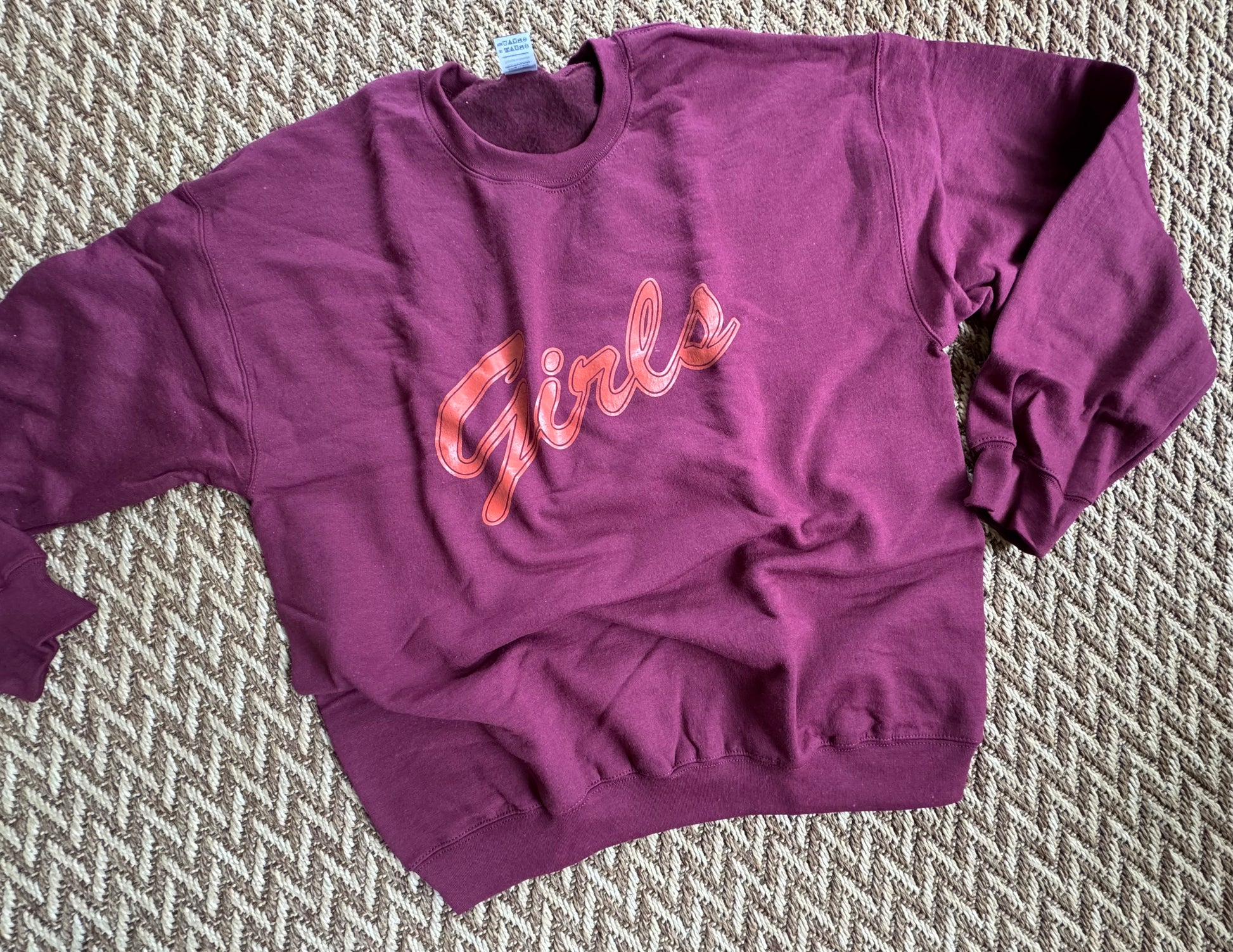 Monica & Rachel would totally wear this 💅 This maroon sweater with bold red “GIRLS” lettering is a subtle nod to our fave Friends duo. Cozy, stylish, and so much attitude.